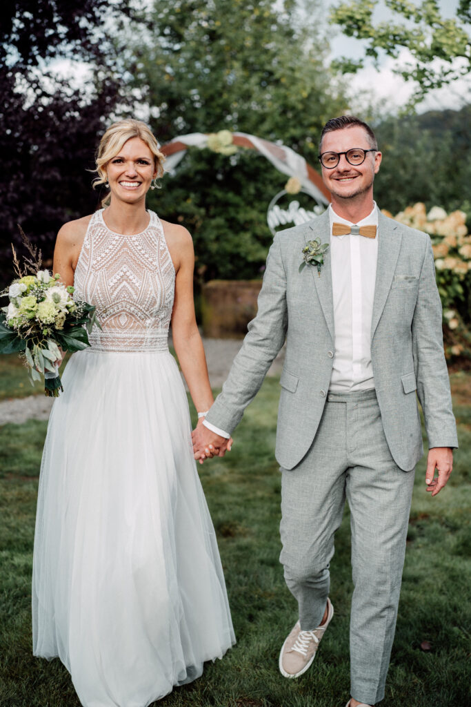 Nous voulions que notre union en tant que couple marié se fonde également au sein de la langue. Avec Marie, bilingue, nous avons trouvé une oratrice très sympathique et chaleureuse. Elle a raconté l’histoire de notre rencontre avec l’amour du détail, en mettant l’accent sur les points forts, avec charme et humour. Nos invités ont également été enchantés et ont souligné le style chaleureux du discours de Marie. Nos entretiens préliminaires ont été amicaux dès le début, ce qui a facilité les choses pour parler de nous. Marie nous a également bien conseillé au cours de la cérémonie, ce qui nous a permis de trouver un rituel qui nous convenait. Merci beaucoup Marie pour cette cérémonie inoubliable lors de notre journée d’union.